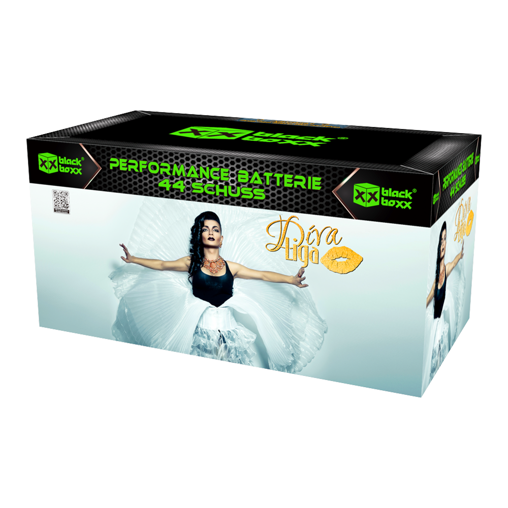 Performance Fächer-Batterie aus Goldflimmer-Chrysanthemen mit Purpur Dahlie und Goldflimmerschweifaufstieg, geschossen im Zick-Zack Fächer, gefolgt von einem Fächer aus Goldflimmerschweifkometen mit Verwandlung zu blauen Päonien in einer Goldflimmerwolke, danach wieder ein Zick-Zack Abschuss von Crossette-Kometen in Gelb und Purpur. Den Abschluss bildet ein Fächer aus großkalibrigen Goldpalmenbuketts in blauem Sternzentrum, kombiniert mit Titangold-Feuertöpfen und blauen Kometen.