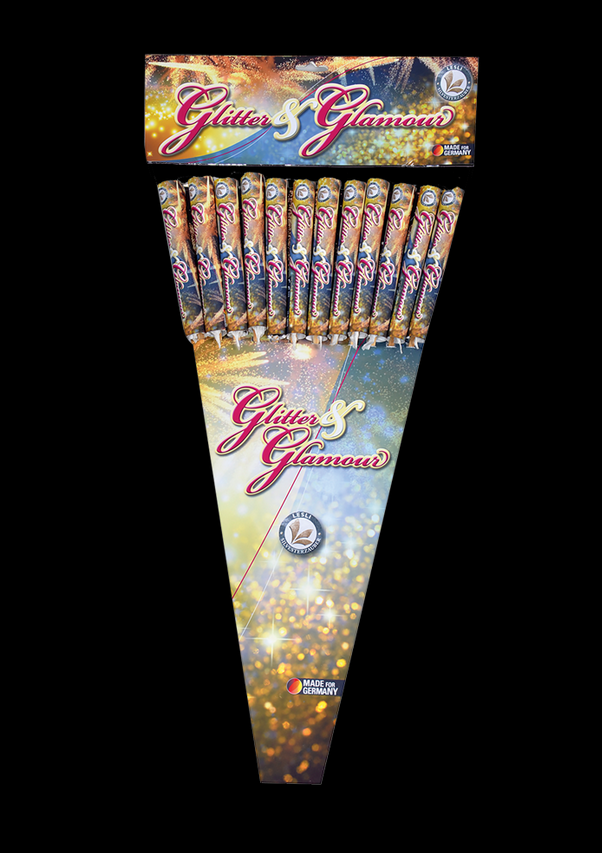 12 Stabraketen mit Blitzknall und kräftigen Effekten in rot, grün, blau und violett