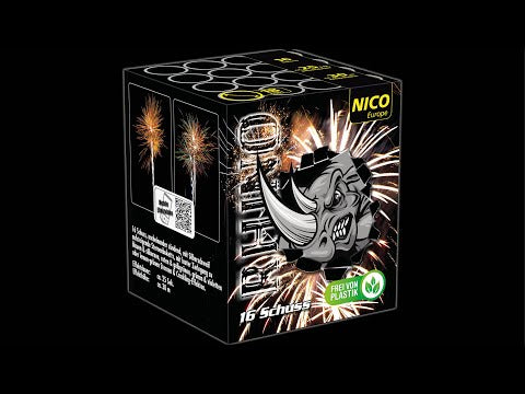 16 Schuss, nacheinander zündend, mit Silberschweif aufsteigende Sternenbuketts mit lauter Zerlegung, blauen und silbernen Sternen, roten und gelbgrünen Sternen, grünen und violetten Sternen, lemongrünen Sternen und Cracklingeffekten.